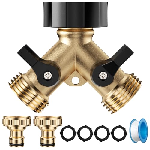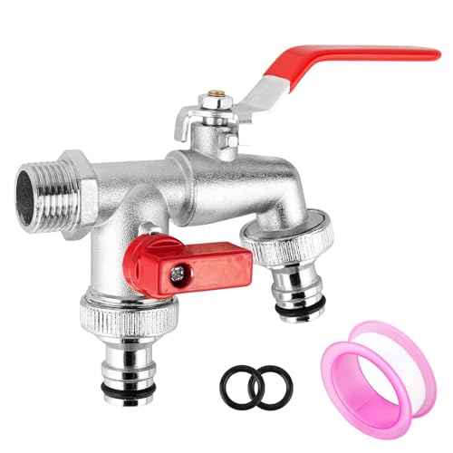 iBamso Trädgårdskran i mässing, 3/4 tum krandelare, slanganslutare, 3-vägs krankoppling med på/av-ventiler, kranadapter för hem, trädgård, utomhus