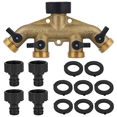 4-vägs massiv trädgård mässing slang splittran, slitstark utomhus slangdelare trädgårdskran adapter vattenrör grenrör individuell stängning av/på-ventil för trädgårdsbevattning vattning blommande