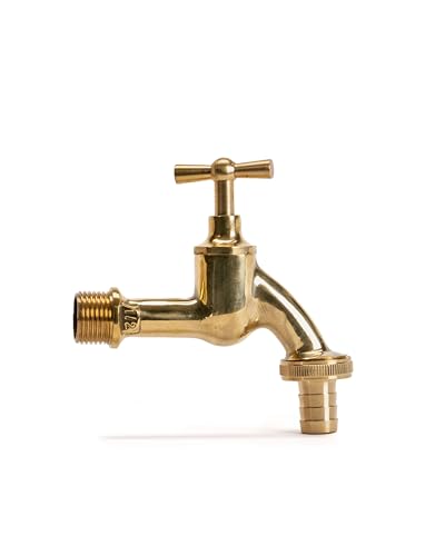 LIVLIG utomhuskran med slangförskruvning 1/2 tum, kran guld, trädgårdskran av mässing, kallvattenkran med 1/2 tums vägganslutning, Polly