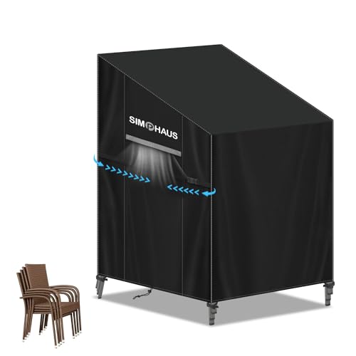 Newbob Skydd trädgårdsstolar stapelbart trädgårdsmöbler överdrag vintertätt skydd för stolar, skyddskåpa 420D Oxford stolskydd vattentätt väderbeständigt upp till 6 stolar (120 x 65 x 75/85 cm)
