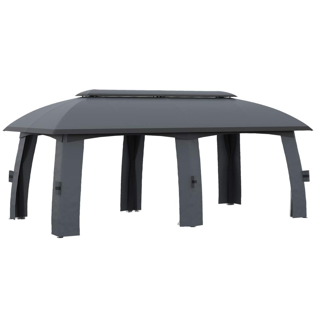 Trädgårdspaviljong 3 x 6 m partytält med dubbla tak & sidoväggar, flugnät för upp till 15 personer, galvaniserad metall, mörkgrå