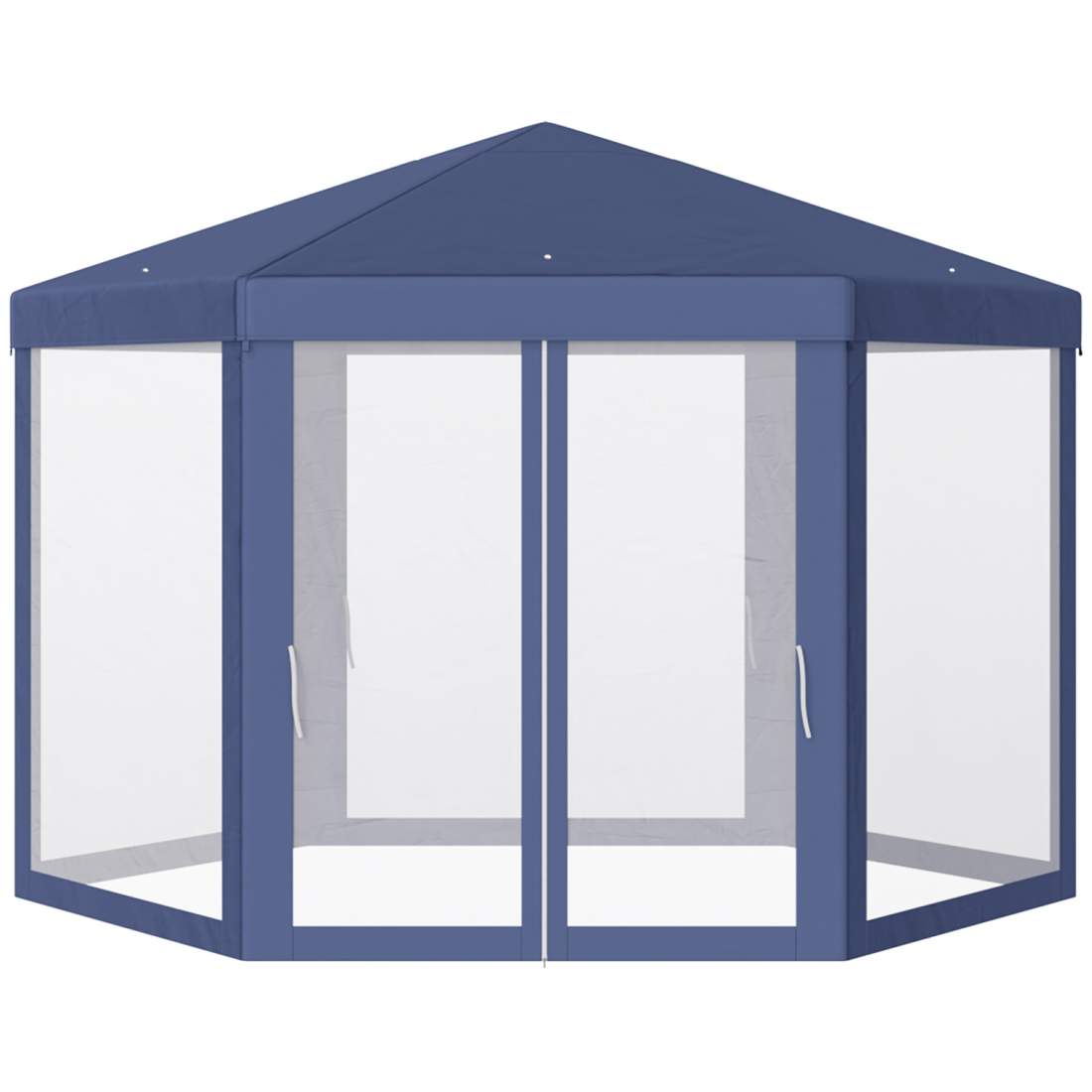Hexagonal Trädgårdspaviljong med Myggnät, Blå