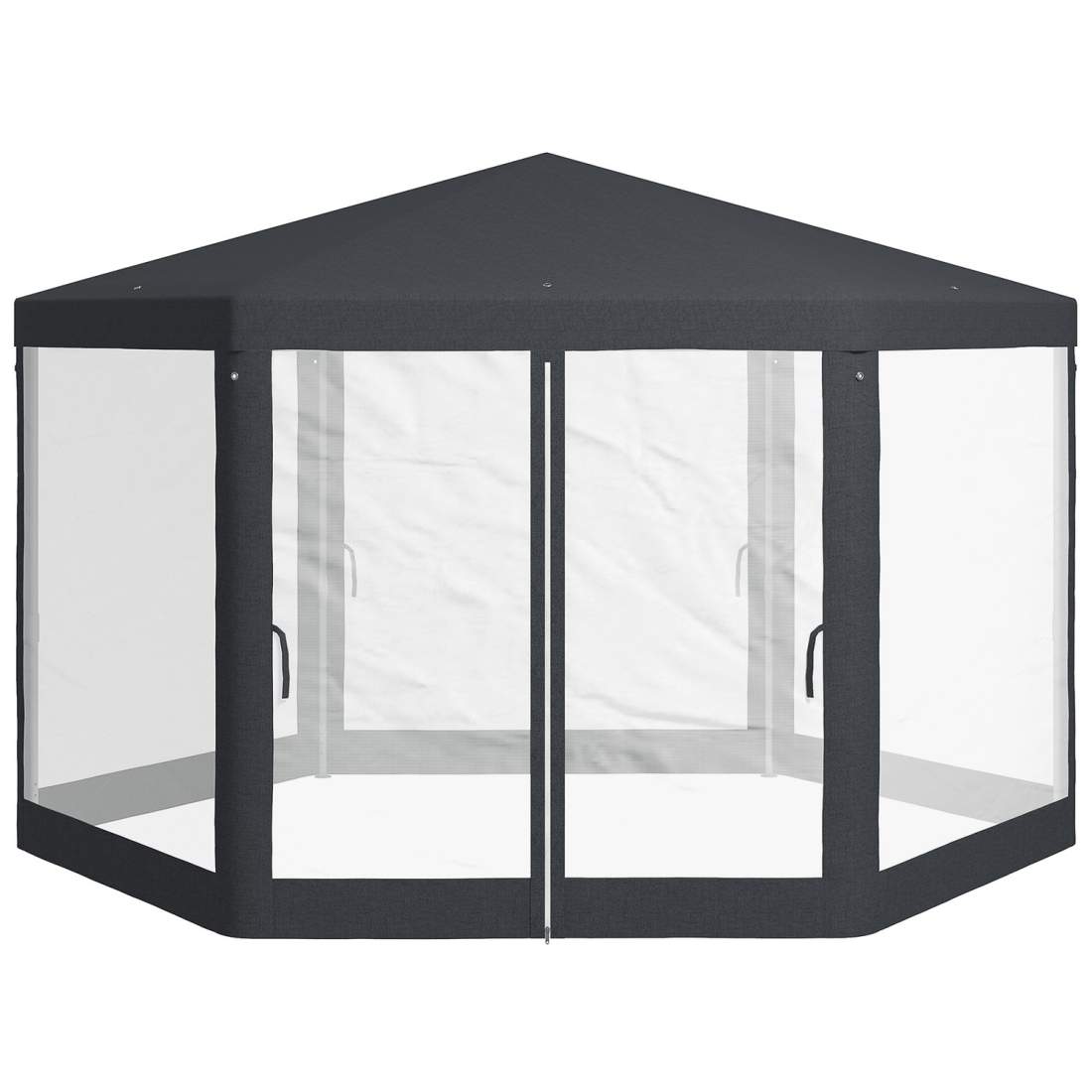 Paviljong 4x4 m trädgårdspaviljong med myggnät, sexkantigt, partytält av polyester & metall, mörkgrå för trädgårdsfester