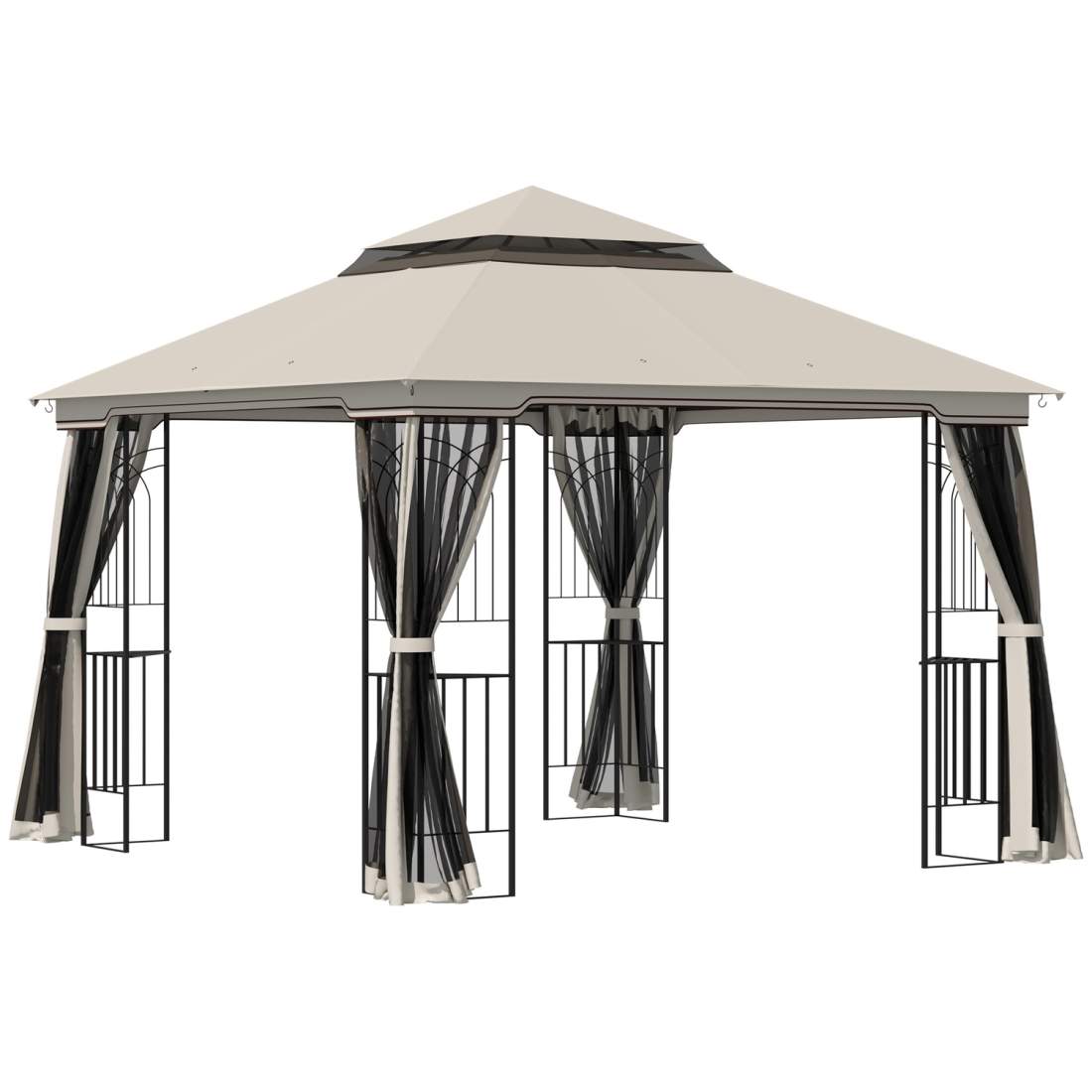 Lusthus med dubbeltak, 4x3,3 m, vattenavvisande, stabil, vintertät trädgårdspaviljong med myggnät, sidopaneler, trädgårdspaviljo