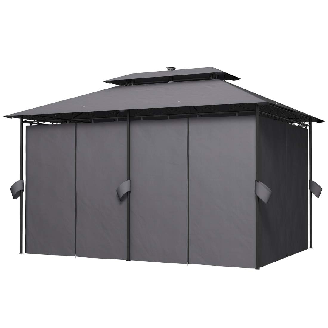 4x4 m justerbar trädgårdspaviljong – dubbeltak, metallram