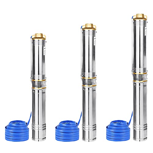 LZQ Djupbrunnspump, brunnspump med 4000 l/H flödeshastighet, 34 m stödhöjd, rörpump sandresistent med smutsfilter dränkbar tryckpump rostfritt stål vattenpump trädgårdspump (0,37 kW/0,5 hp)