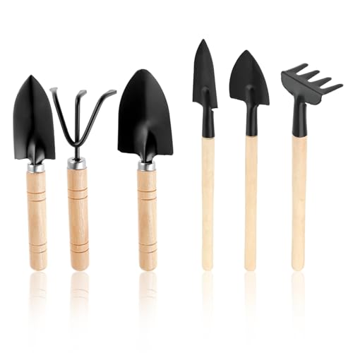 Små trädgårdsredskap Gjinxi 6 stycken mini trähandtag järn trädgårdsverktyg set liten trädgårdsredskap, trädgårdsverktygsset med trähandtag trädgård verktygsset för blommor växter lös jord plantering