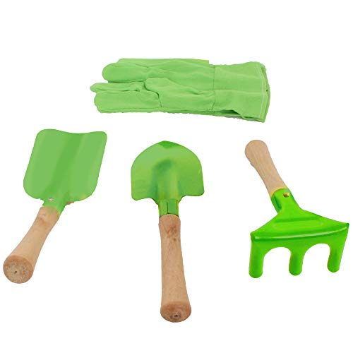 KADAX Trädgårdsverktygsset, set om 4, metallspade, kratta och hacka, trädgårdsverktyg för kvinnor, inklusive handskar, trädgårdsset, trädgårdsredskap