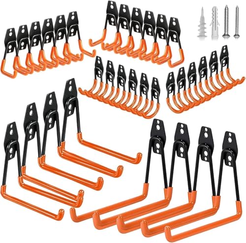 GUDEMAY Väggkrokar Garage 32 Packs| Krokar Garagevägg | Garagekrokar Kraftiga | Förvaringskrokar Set För att Organisera Cykel, Stege, Trädgårdsredskap, Rep, Kablar | Orange färg