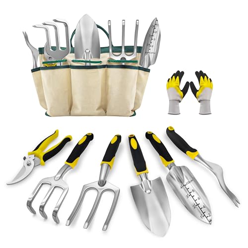 QianRuiDa Trädgårdsverktygsset 8 delar trädgårdsredskap med trädgårdspåse trädgårdshandskar trädgårdsredskap med sekatör spade kratta trädgårdssatser för trädgårdsskötsel
