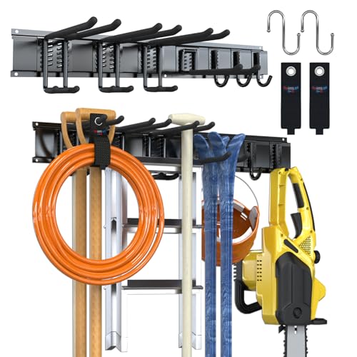 3-H garage förvaring, 80 cm justerbar 7 väggkrokar garage och 2 S-krokar för trädgårdsredskap, verktygshållare väggträdgårdsredskap för källare skidutrustning kvast stol kratta spade svart