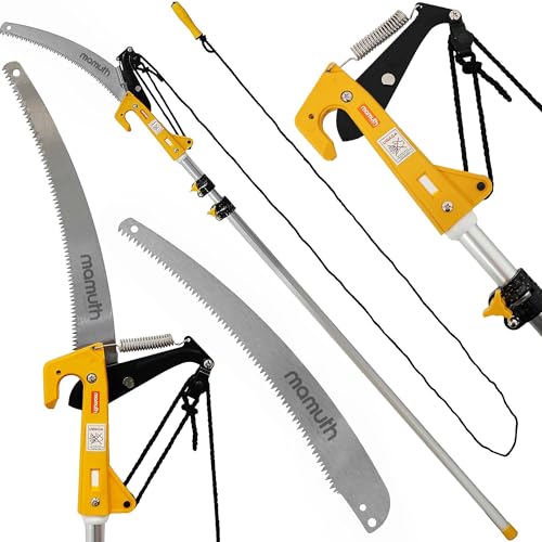 MAMUTH Grensåg teleskop 5,5 m – trädsåg med förlängningsstång, hög knapp handsåg för höga grenar, utdragbar trädgårdssåg, robust och skarp för trädgård och skog