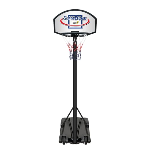 Sport1 703200101, Slam Dunk Transportable Plate Korg. Justerbar korg för utomhus. Trädgårdsspel för Barn. Höjd Ring 140-200 cm. Ungdom Unisex, Svart, Drunk