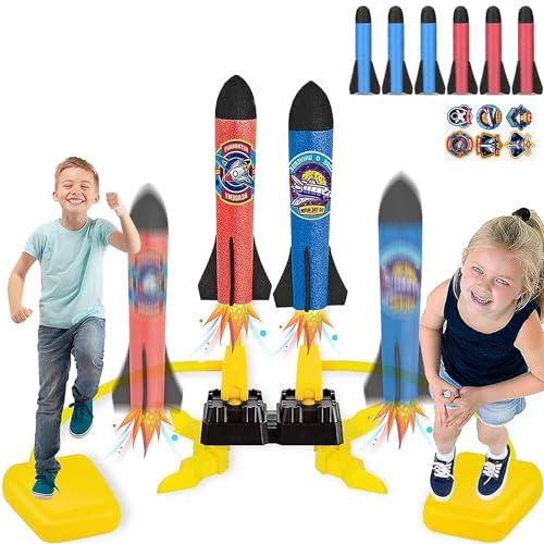 XFLYP Raketraket, Leksaksraket med 6 Skumraketer och 2 Kraftfulla Fotpumpar för 3-12-åriga Pojkar, Raketer Trädgårdsspel för Barn Gåvor Utomhusleksaker Trädgårdsleksaker Stompleksak Raketer Pojkar