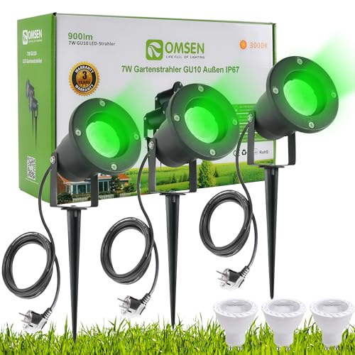 ledscom.de SHINGA trädgårdsspotlight för utomhusbruk, IP65, stickpropp, svart, inkl. GU10 LED-lampa 630lm, varmvit