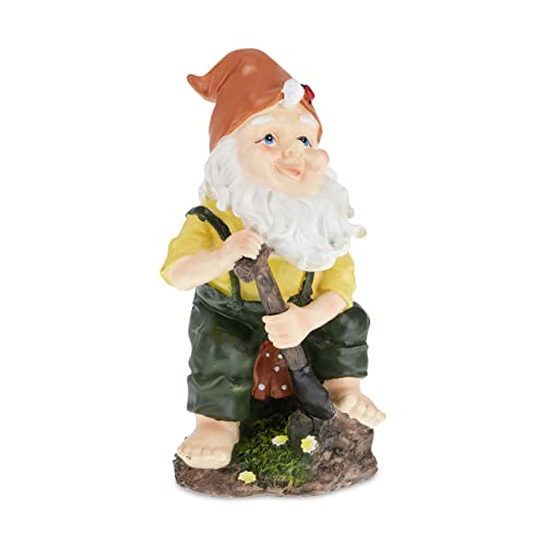 Relaxdays Trädgårdstomte med spade, väderbeständig, frostsäker, H x B x D: 24 x 13 x 13 cm, trädgårdshantel, konstgjord sten, färgglad