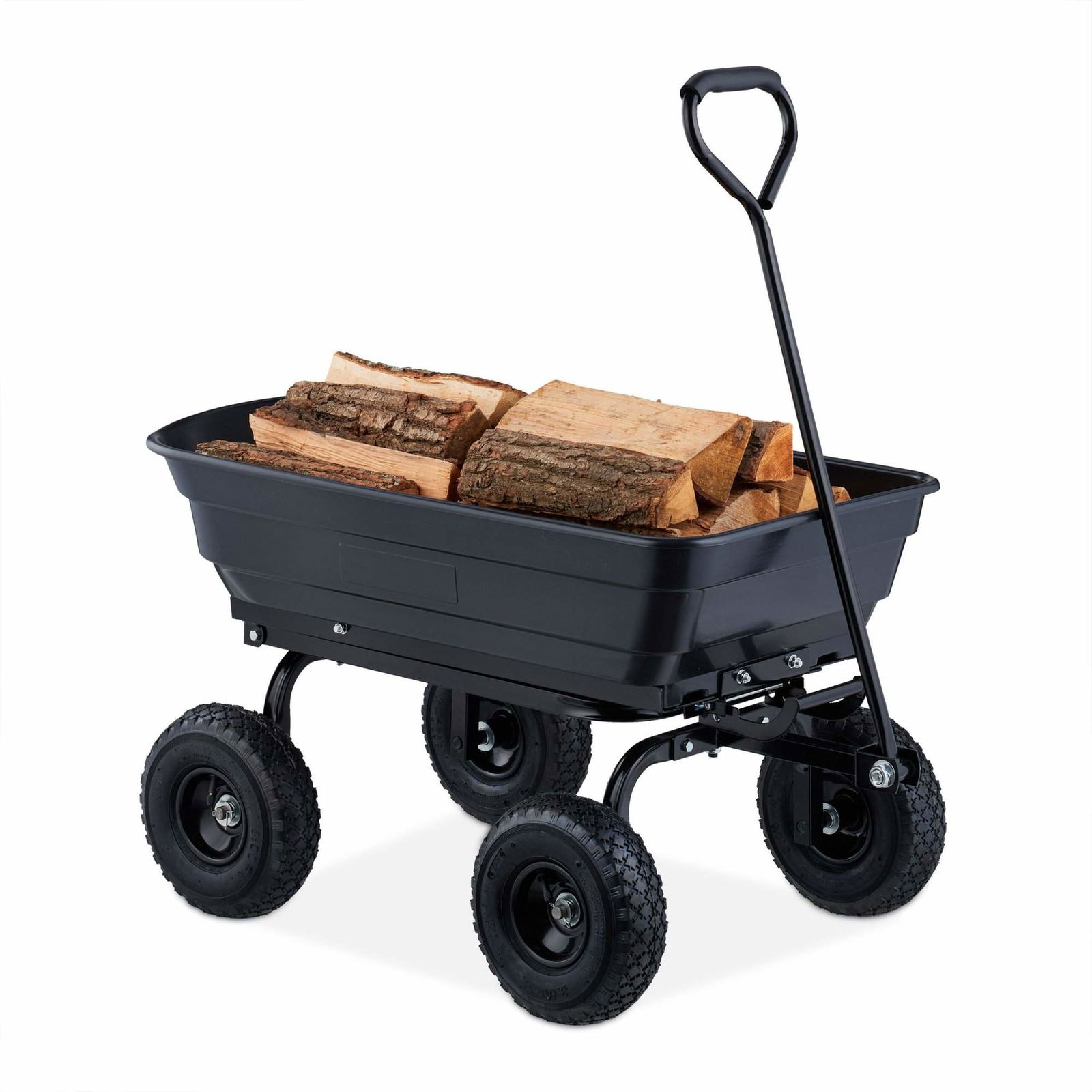 Relaxdays Trädgårdsvagn, stor rullvagn med hopfällbara sidodelar, avtagbar presenning med handtag, 500 kg, svart