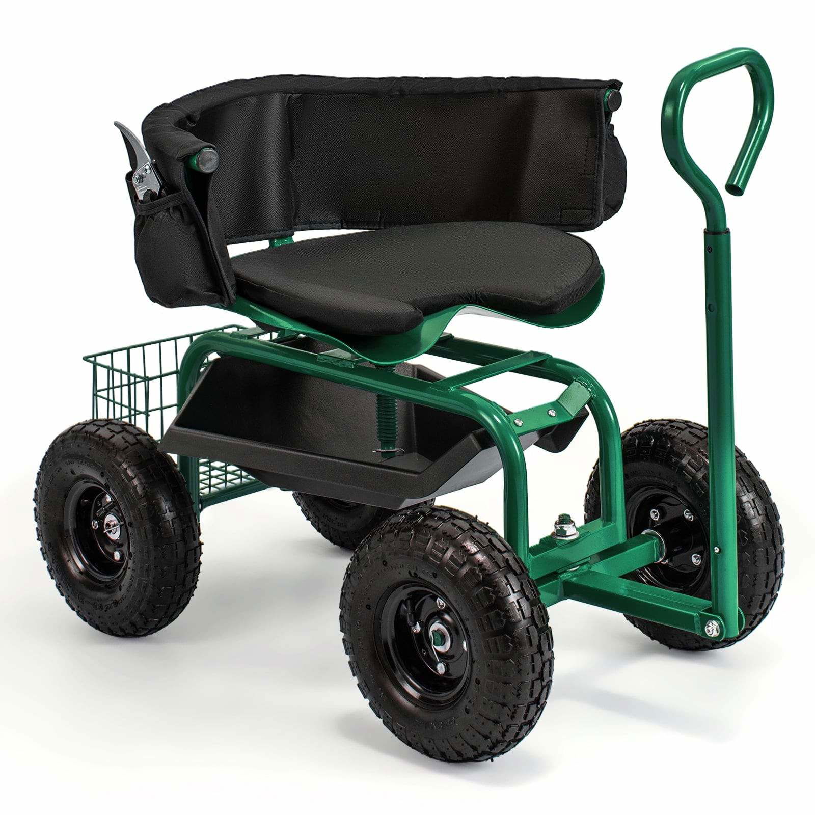 Justerbar trädgårdsvagn med roterande säte och förvaring – grön