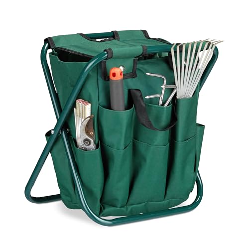 Relaxdays Trädgårdsverktyg pall, trädgårdsredskap förvaring, vikbar, H x B x D: 42 x 30 x 39 cm, hopfällbar pall trädgårdsarbete, grön