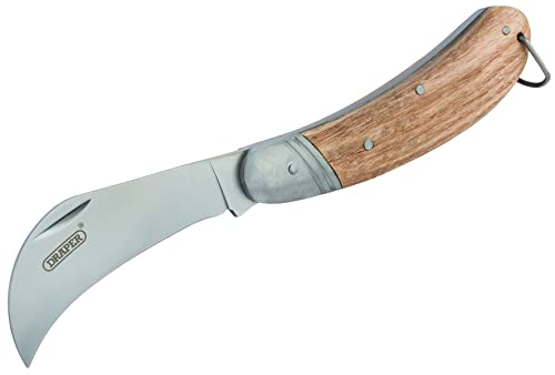 Draper knoppkniv med ekhandtag | Fällkniv i rostfritt stål | Fällkniv med enkelt blad | trädgårdsverktyg | 17558, BRUN
