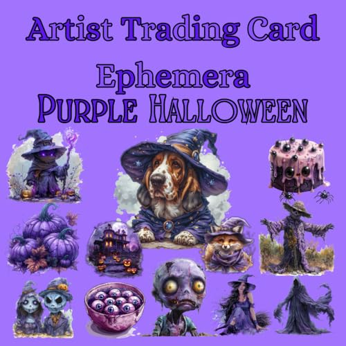 Artist Trading Card Ephemera Purple Halloween, Cut and Collage: Ephemera Book, Junk Journal, Glue Books, Mixed Media Collage Art, Scrapbooking, Decoupage, Card Making, Art Journaling