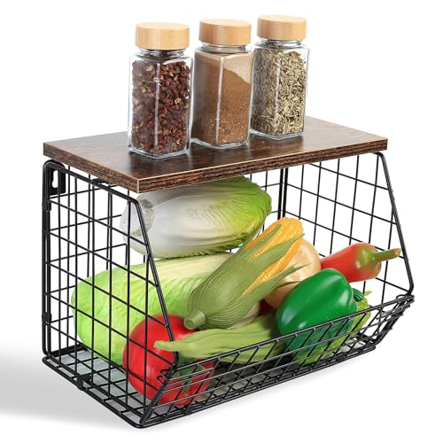 Hängande fruktkorg, väggkorg Hängande fruktskål Etagere, Stapelbar trådkorg Svart, metall hängande korg Köksarrangör med trälock för förvaring av frukt och grönsaker Köksorganisation Fruktställ
