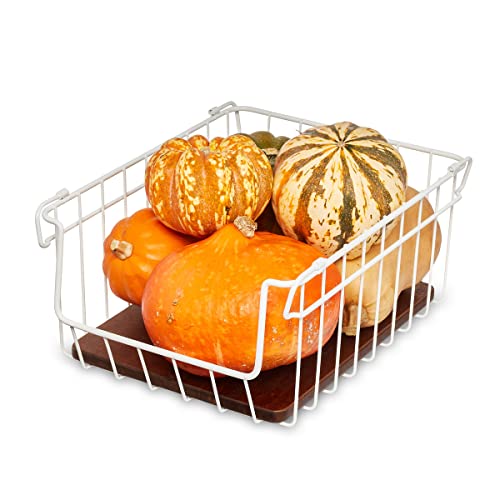 iDesign 95393EU The Ría Safford Collection trådkorg, öppet frontskåp tillverkat av metall och akaciaträ, köksförvaring och organisation, vit och naturlig, 18/10 stål