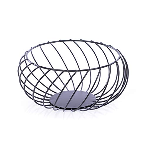 Relaxdays Fruktskål metall, rund fruktkorg, H x D: 14 x 25 cm, modern trådkorg för frukt och grönsaker, svart