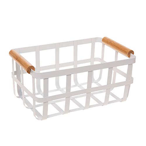 Simplify Rektangulär förvaringskorg i metall med bambuhandtag | stor | bondgårdsstil trådkorg | Hemorganiserare | dekorativ | rustik | vit
