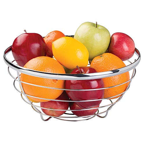 iDesign Rund fruktskål, modern trådkorg för frukt och grönsaker av metall, silver