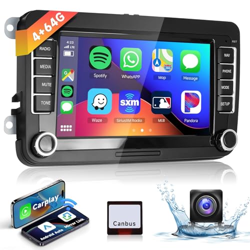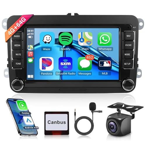 4G & 64G 7" bilradio Bluetooth för VW Golf 5 6 Polo Passat Skoda Touran Seat Wireless Carplay Android Auto, WiFi GPS Navi HiFi RDS/FM Radio 2 din med AHD backkamera/DVR/Canbus