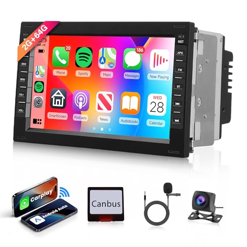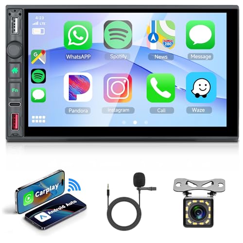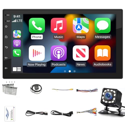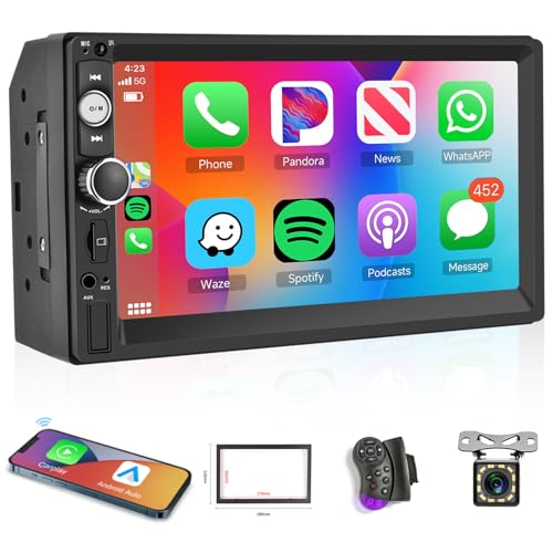 Hodozzy Trådlös Carplay/Android Auto 2 Din bilradio, 7 tum HD stereoskärm för bil Bluetooth/spegellänk/USB/AUX/FM-radio + backkamera ..