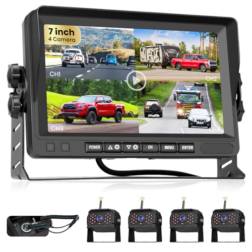 Podofo 4 x trådlös backkamera med 7 tums bildskärm, IP69 bakre kamera vattentät vidvinkel mörkerseende för husbil/husvagn/LKW, looping video, manuell zoomning