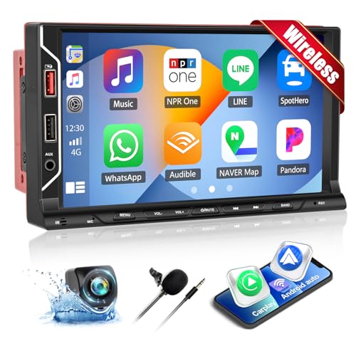 2 Din bilradio med trådlös CarPlay trådlös Android Auto 7-tums automatisk ljudmottagare bilstereo pekskärm med Bluetooth 5.1, trådlös spegellänk, FM, SWC, USB/AUX/TF+backkamera