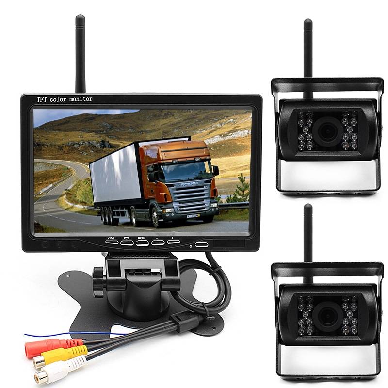 Trådlös backkamera-kit med dubbla kameror BK20PRO, 7" display, IR-LED, 120°, fjärrkontroll