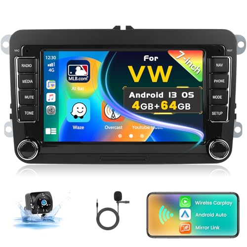 4G + 64G trådlös Carplay Android 13 bilradio för VW Golf 5 6 Passat Polo Tiguan Touran Caddy Skoda SEAT 7 tums bilradio Android bil GPS WiFi Mirror länk Bluetooth FM/RDS/EQ/SWC backkamera