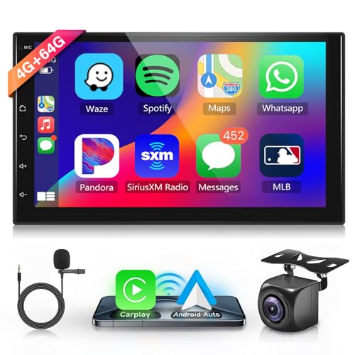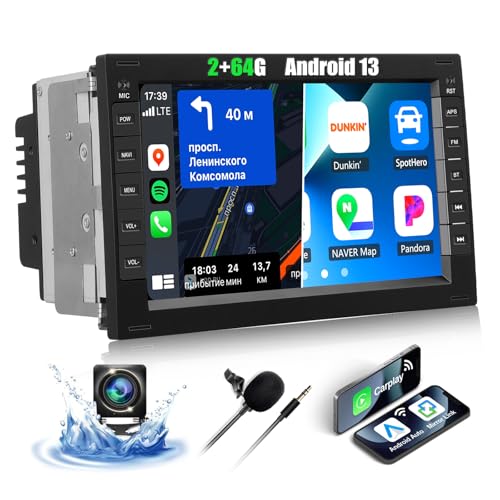 4G + 64G trådlös Carplay Android 13 bilradio 2 Din med Android-bil, GPS-navigering, WiFi 7 tums pekskärm, bilradio med spegellänk, Bluetooth FM/RDS/32EQ/AI DSP/DAB/OBD/DVR rattkontroll, backkamera