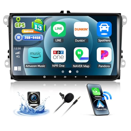 CAMECHO 2+64G Android 13 bilradio för VW Passat B6 B7 Golf 5 6 Jetta T5 Polo Touran Caddy Sharan Seat, 9" trådlös Carplay Bluetooth-radio med Android Auto WiFi GPS FM/RDS + backkamera