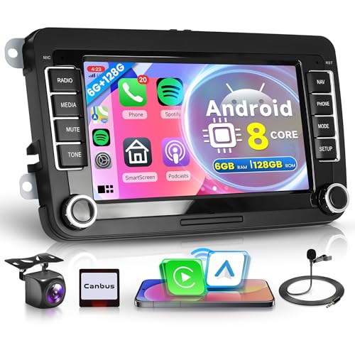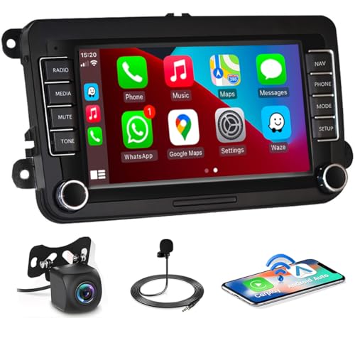 CAMECHO 1+32G Android 13 bilradio med Carplay Wireless för VW Golf 5 Golf 6 Polo Tiguan, 7-tums skärm dubbel DIN-radio med satellitnavigering/Android Car/FM RDS/Bluetooth och USB + backkamera