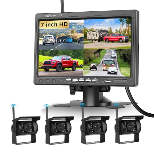 Podofo 4 x trådlös bakre kamera med 7 tums skärm IP68 mörkerseende vidvinkel, AHD IPS-skärm trådlös backkamera för husbil/husbil/lastbil, BSD