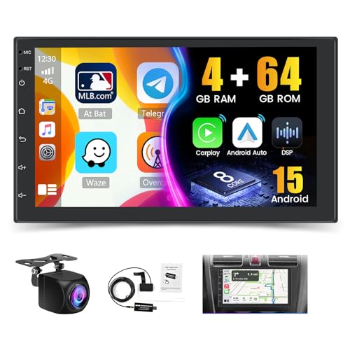 Hikity 4+64 GB] dubbel Din DAB/DAB Android bilradio med trådlös Carplay Android bilspegellänk, 2 DIN bilradio med navigeringssystem 7 tums IPS-skärm DSP WiFi DAB RDS FM-radio backkamera