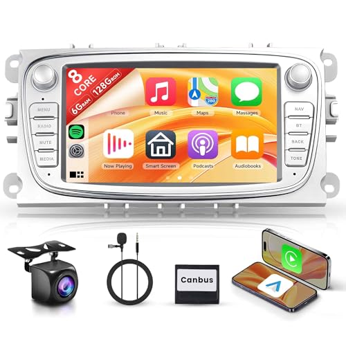 8 kärnor 6 + 128 G android bilradio för Ford Focus II S-Max Mondeo Galaxy Il C-Max Kuga 7 tums trådlös carplay radio med Android bil spegel länk Bluetooth FM/RDS/EQ/DSP WiFi GPS-navigering backkamera
