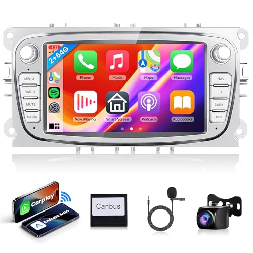 2G + 64G trådlös Carplay Android 13 bilradio för Ford Focus II mk2 Mondeo S-Max C-Max Galaxy Kuga7 tums bilradio med Android Auto GPS WiFi Mirror Link Bluetooth FM/RDS/DAB/EQ/SWC backkamera