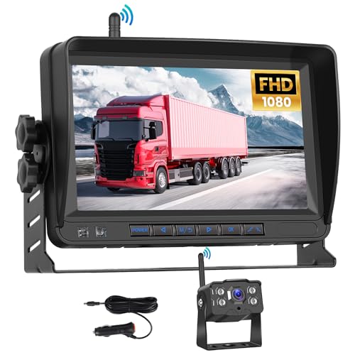 Hikity Trådlös backkamera, AHD 1080P 7-tums vattentät backkamera och bildskärm IP68 stabila digitala signaler nattsyn supervidvinkel för skåpbilar, bilar, lastbilar