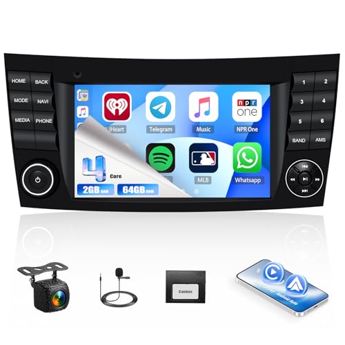 [2+64G] CAMECHO Android 13 bilradio för Mercedes Benz CLS E-Class W211 W219 med trådlös Navi Carplay, 7" pekskärm radio bluetooth wifi länk spegel FM/RDS SWC+Canbus + mikrofon + backkamera