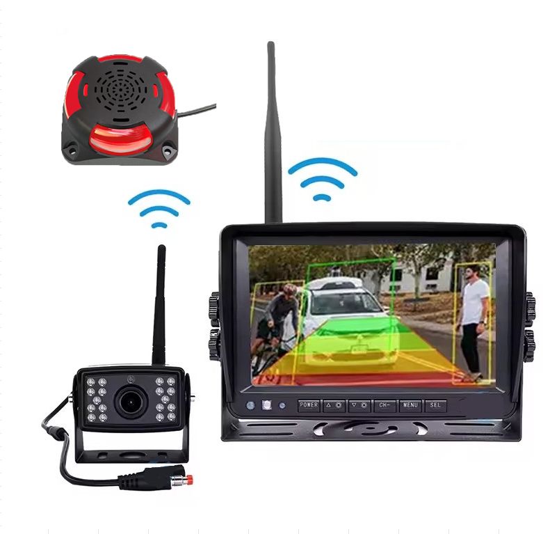 Trådlös digital backkamera & varningssystem för medtrafikanter, Smart detektor, 7" Tums, högtalare, 200m räckvidd, IR, Mörkersyn, IP68