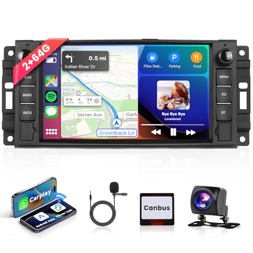 2+64G, Podofo bilradio för Jeep/Chevrolet/Chrysler/Dodge Wireless Carplay Android Auto med pekskärm 7", Android bilstereo med AHD backkamera GPS Bluetooth RDS/FM-radio/CANBUS