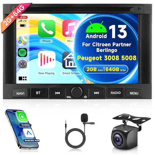 2G+64G trådlös Carplay Android bilradio 2 Din för Peugeot 3008 5008 Citroen Partner Berlingo 2010–2016 7 tums bilradio med Android bilnavigator GPS WIFI Mirror Link Bluetooth FM/RDS/SWC backkamera