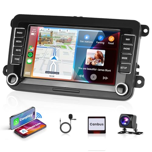 Hikity - Android trådlös Carplay Bilradio med Navi för VW Golf 5 6 Polo Passat, 7 tums pekskärmsradio Android Car med skärm Radio FM/RDS/WiFi/USB/Canbus + backkamera