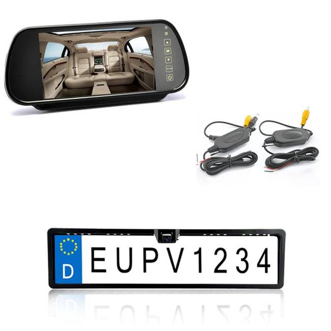 Trådlös Backkamera i form av registreringsplåt, med backspegelsdisplay